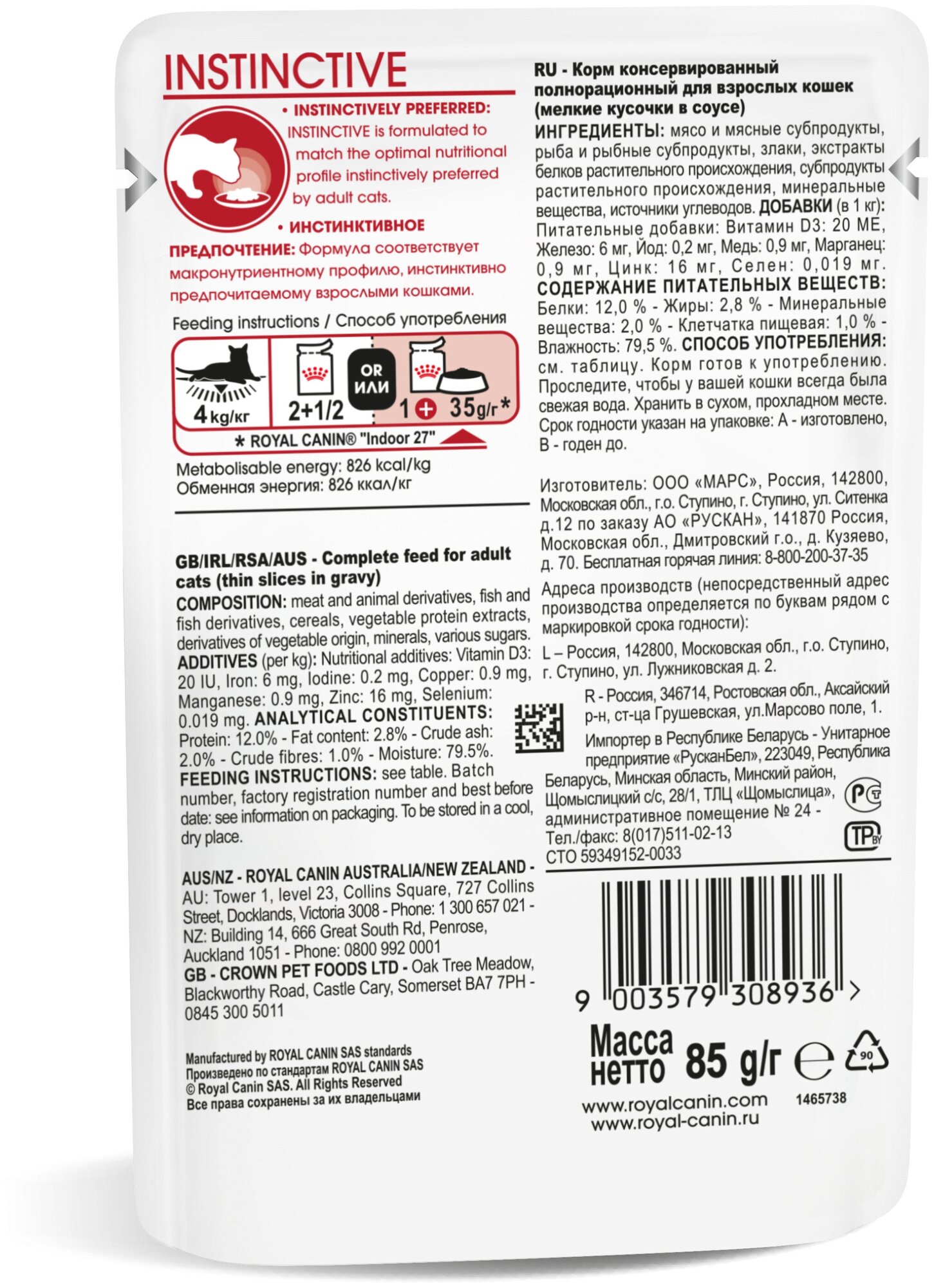 Влажный корм RC Instinctive для кошек, в соусе, пауч, 85 г(24 шт.) интересное: