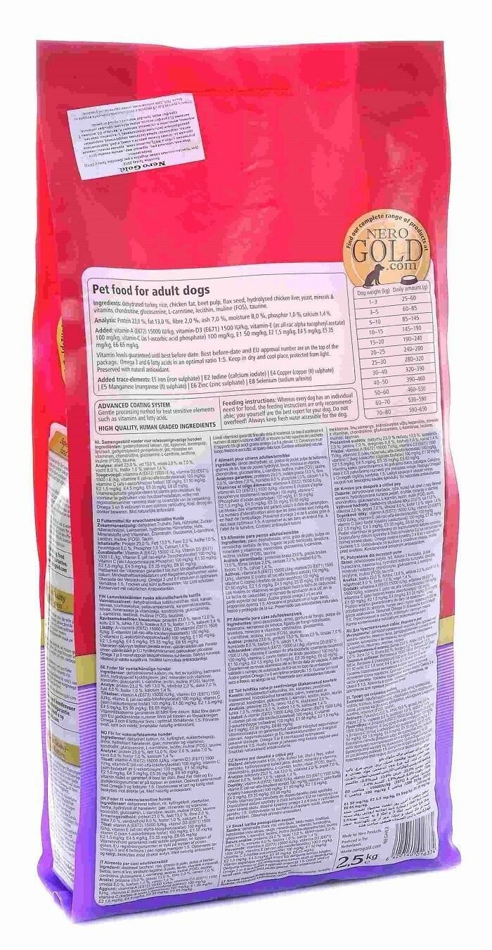 NERO GOLD DOG ADULT SENSITIVE TURKEY для взрослых собак всех пород при аллергии с индейкой и рисом (2,5 кг)