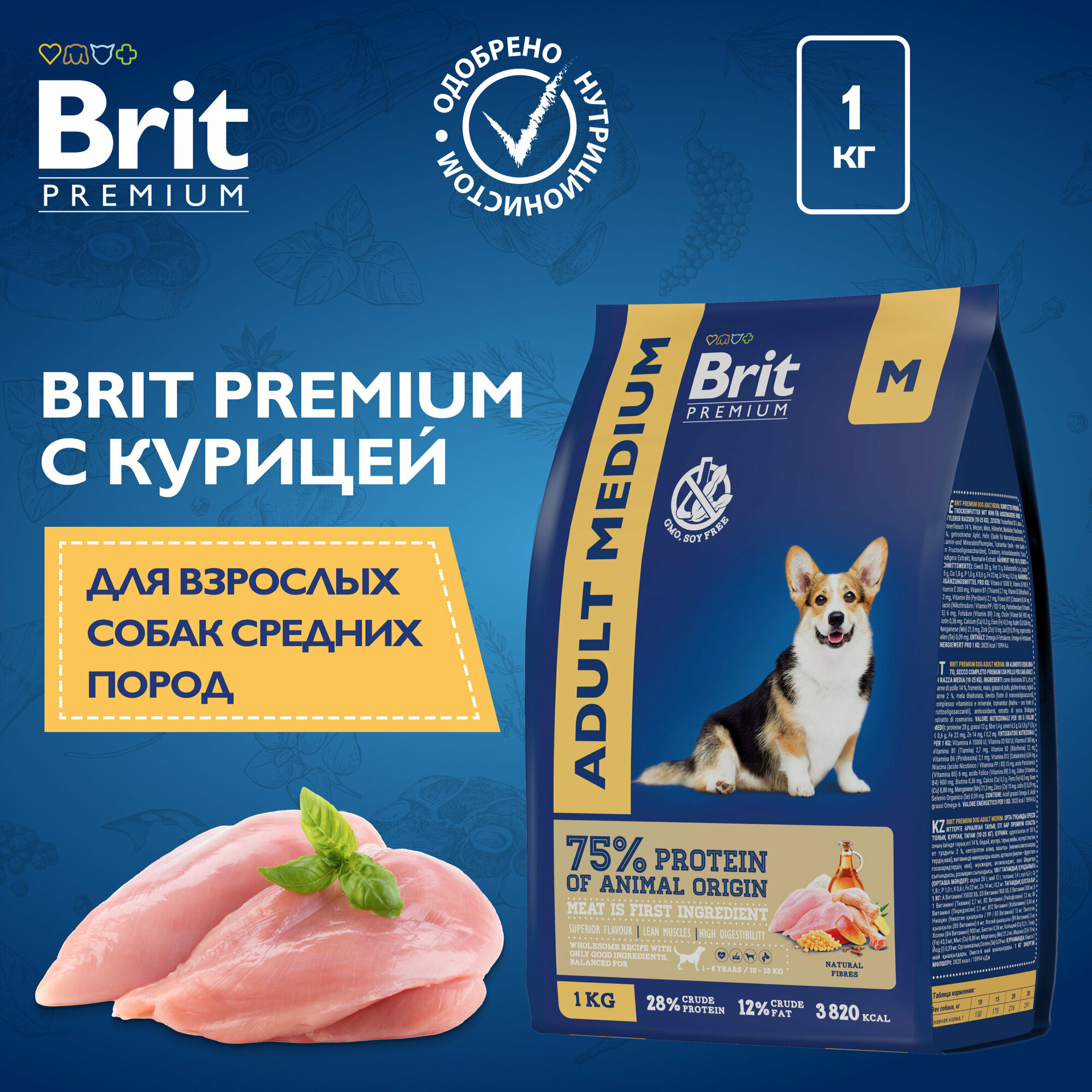 Купить Brit Premium корм для собак средних пород, с курицей 1 кг