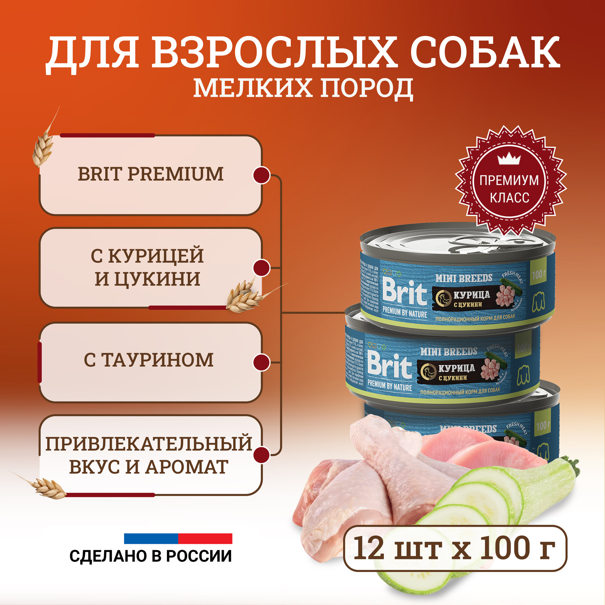 Консервы Брит для взрослых собак Мелких пород Курица с цукини (цена за упаковку) 100г х 12шт