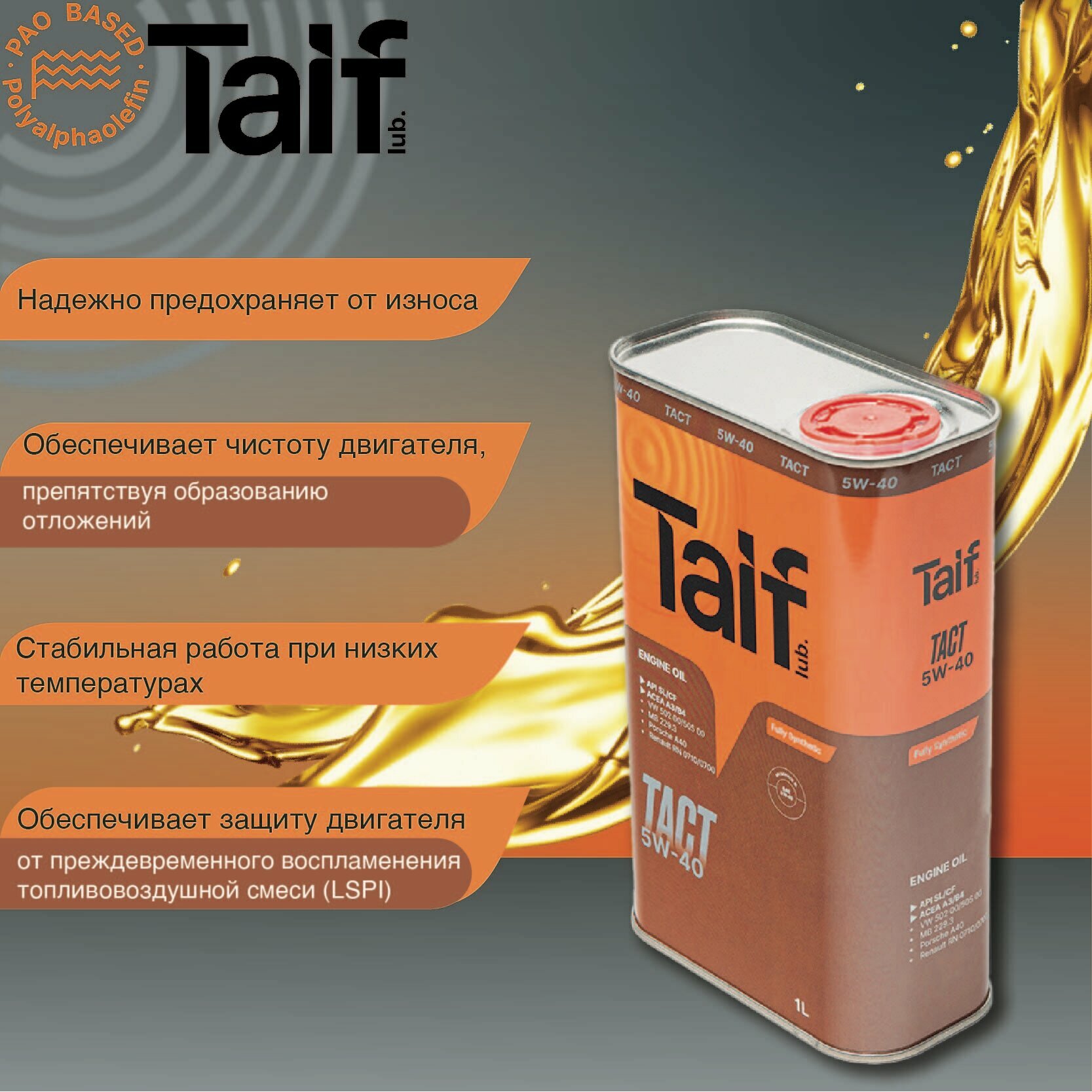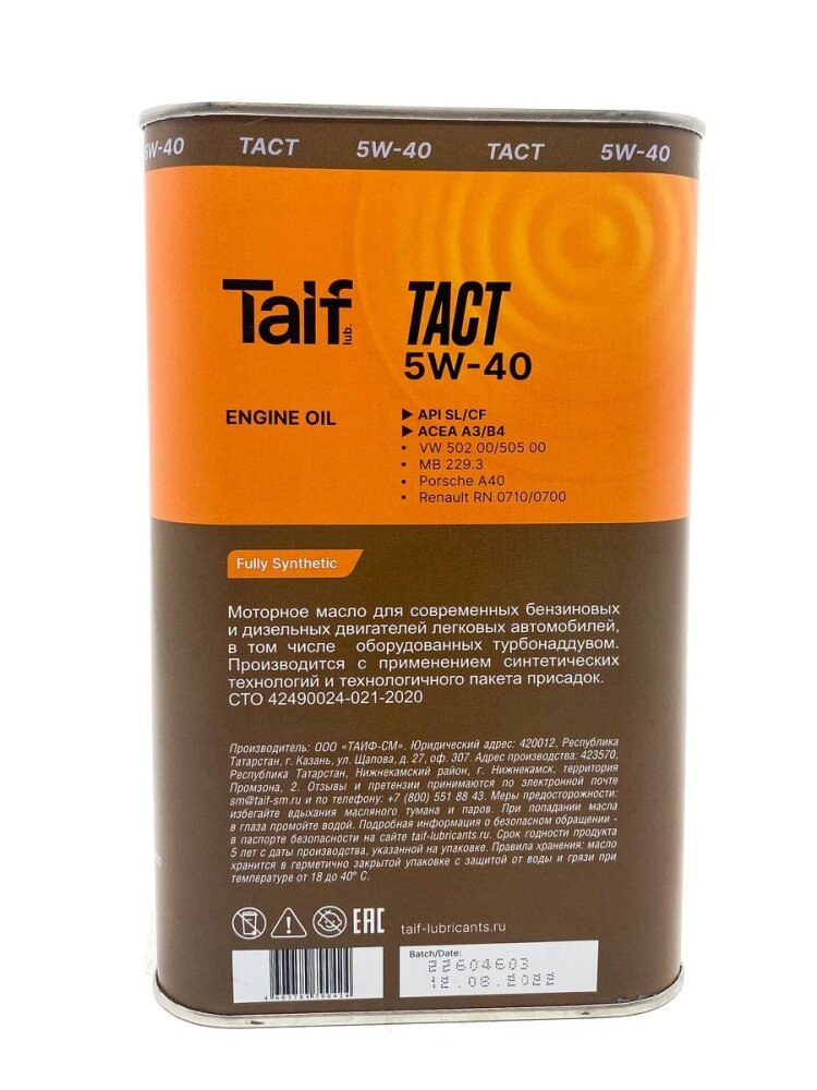 TAIF TACT 5W-40 1л Синтетическое моторное масло интересное: