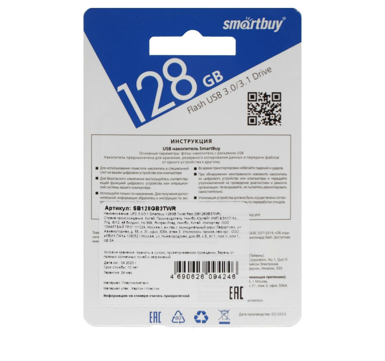 128Gb SmartBuy Twist red USB 3.0 интересное: