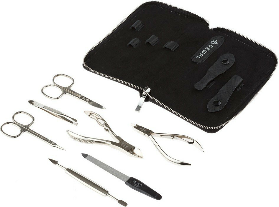 Маникюрный набор DEWAL серии "Современная классика" 7 предметов, футляр натуральная кожа, цвет черный (904BLACK)