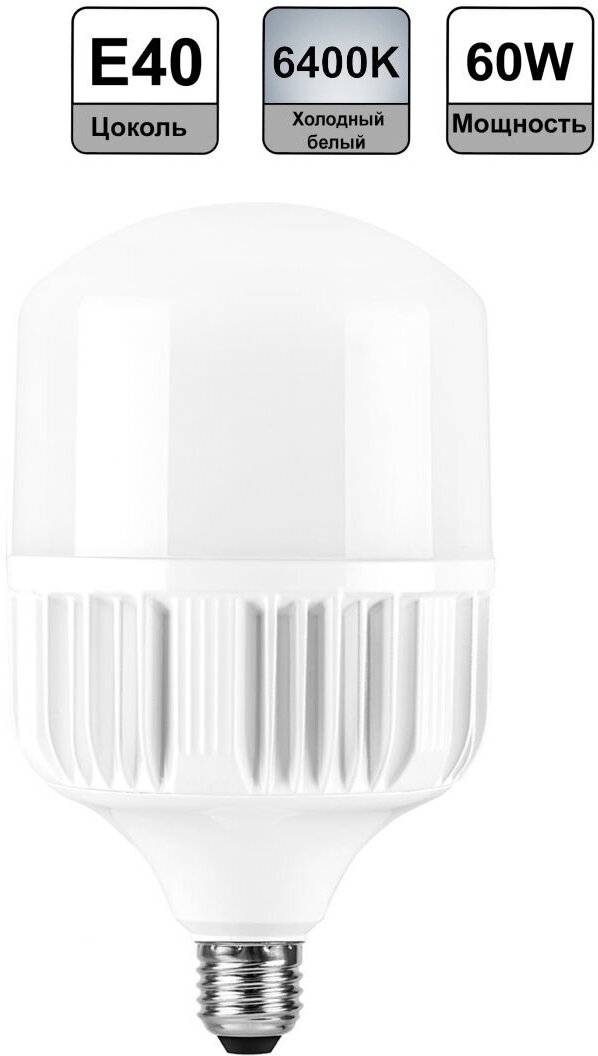 Светодиодная лампа/ Лампочка светодиодная промышленная 60W, 230V, E40, 6400K, Feron, 236*138 мм