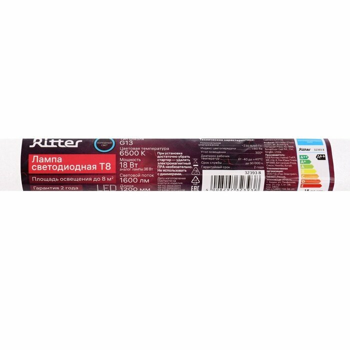 REV Лампа светодиодная REV LED, Т8, G13, 18 Вт, 6500 К, 1200 мм, холодный свет интересное: