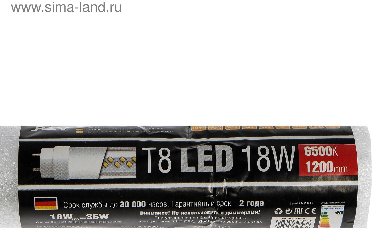 Купить REV Лампа светодиодная REV LED, Т8, G13, 18 Вт, 6500 К, 1200 мм, холодный свет