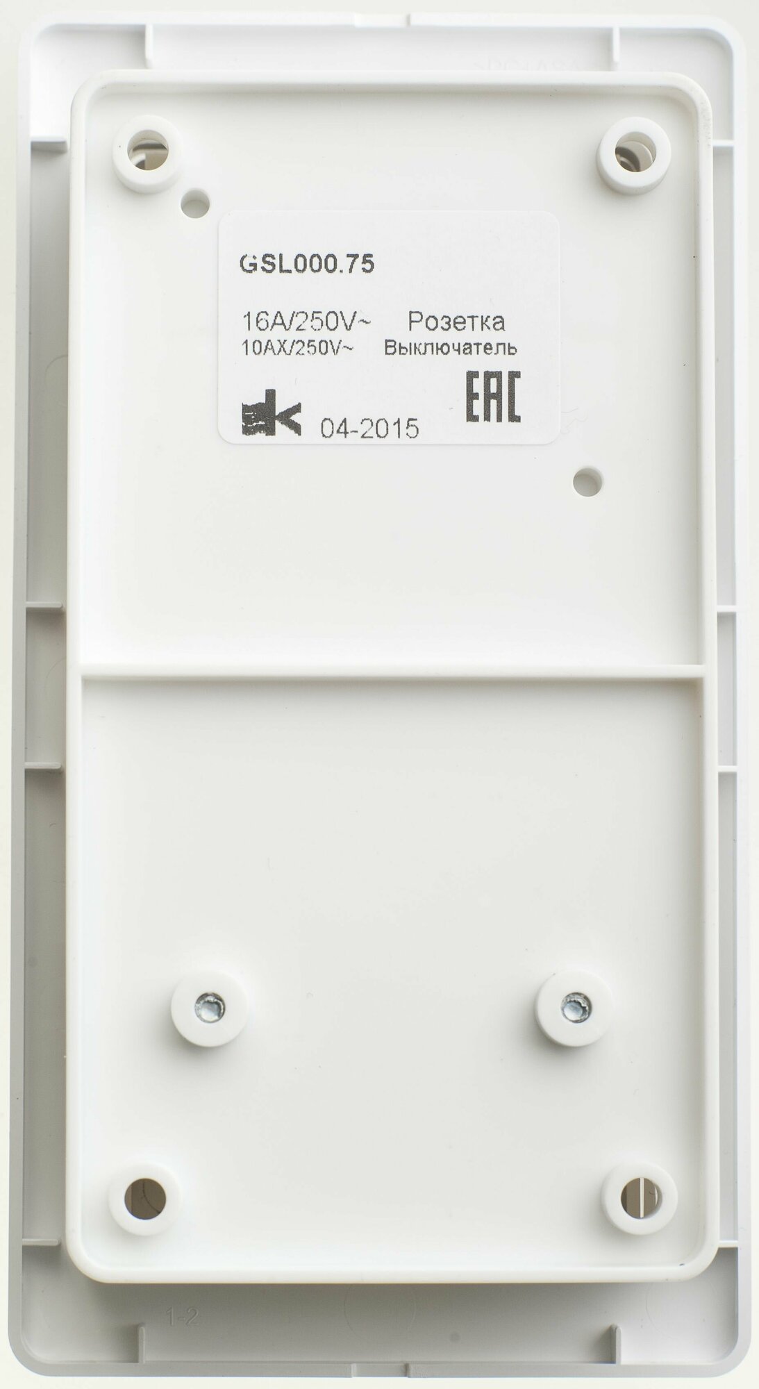 Блок: розетка с заземлением со шторками + выключатель двухклавишный с подсветкой белый (GSL000175)