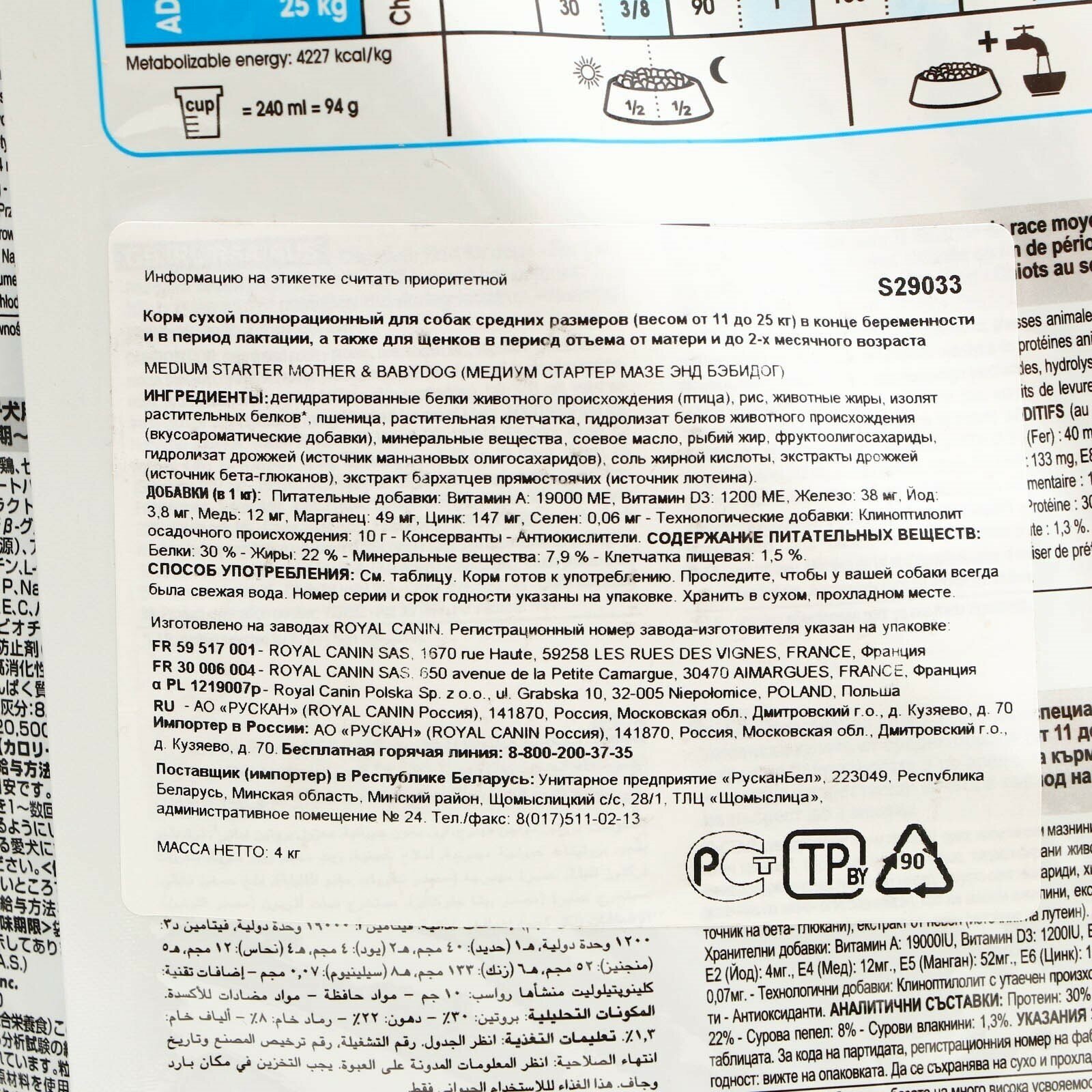 Корм Royal Canin Medium Starter для щенков средних пород до 2 мес., беременных и кормящих сук, 4 кг