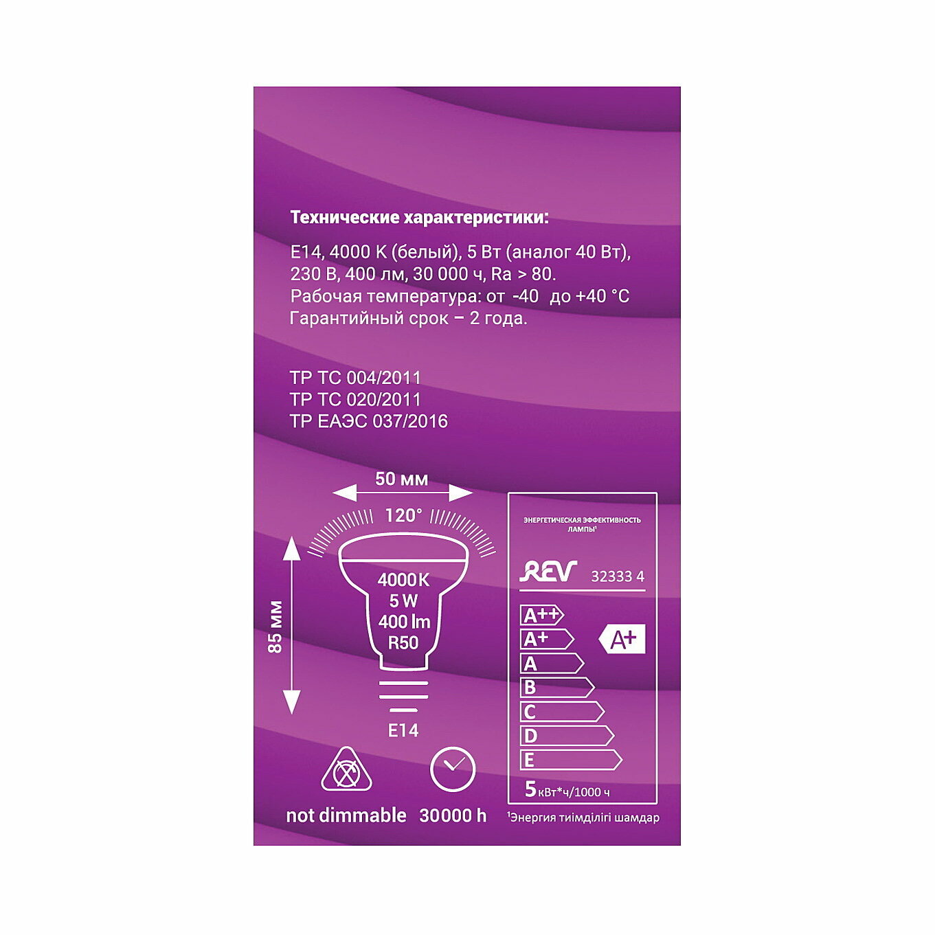 Светодиодная лампа LED 5Вт R50 E14 4000K. 32333 4 интересное: