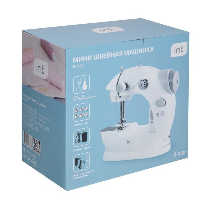 IRIT Швейная машина Irit IRP-01, 9 Вт, полуавтомат, от батареек/сети, бело-серая