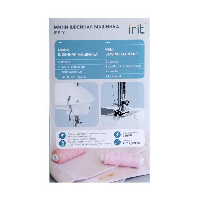 Купить IRIT Швейная машина Irit IRP-01, 9 Вт, полуавтомат, от батареек/сети, бело-серая