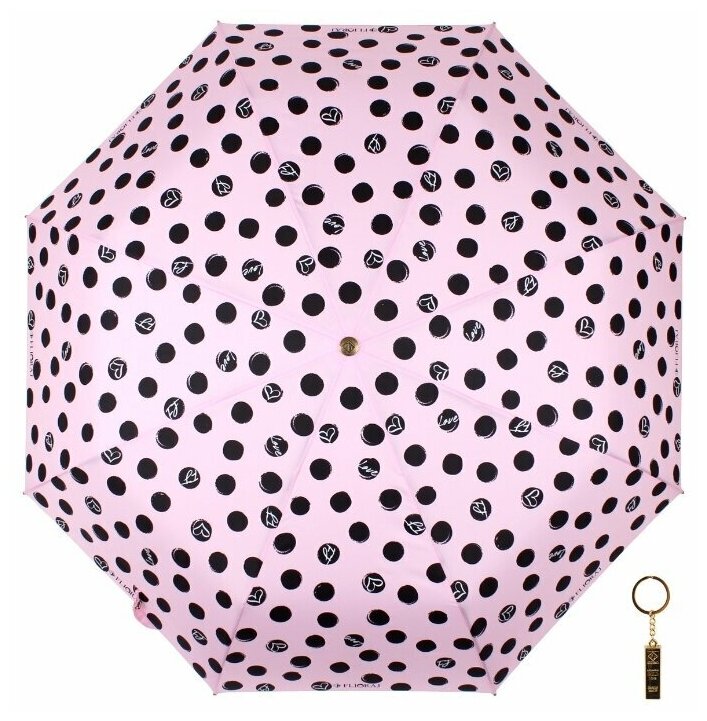 Зонт женский Flioraj Розовый 3 сложения Автомат Антиветер с брелоком 16054 FJ
