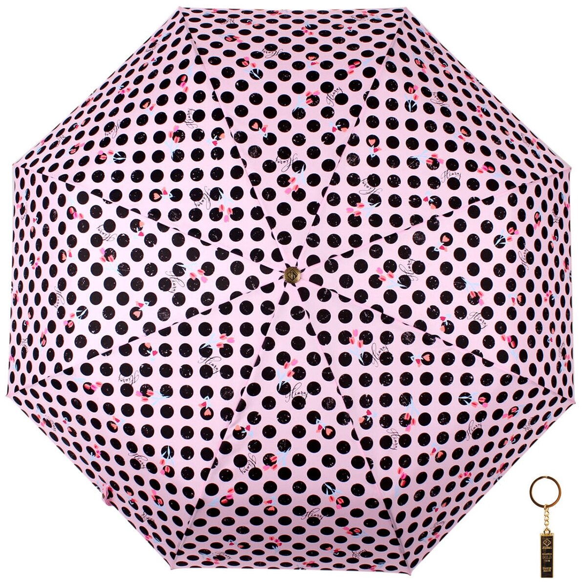 Зонт женский Flioraj Розовый 3 сложения Автомат Антиветер с брелоком 16062 FJ