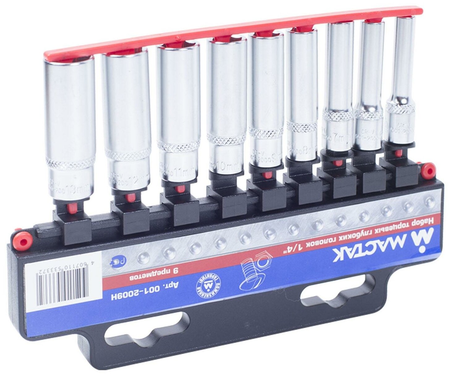 Купить Набор торцевых глубоких головок (1/4", 5-13 мм, 9 предметов) мастак 001-2009H