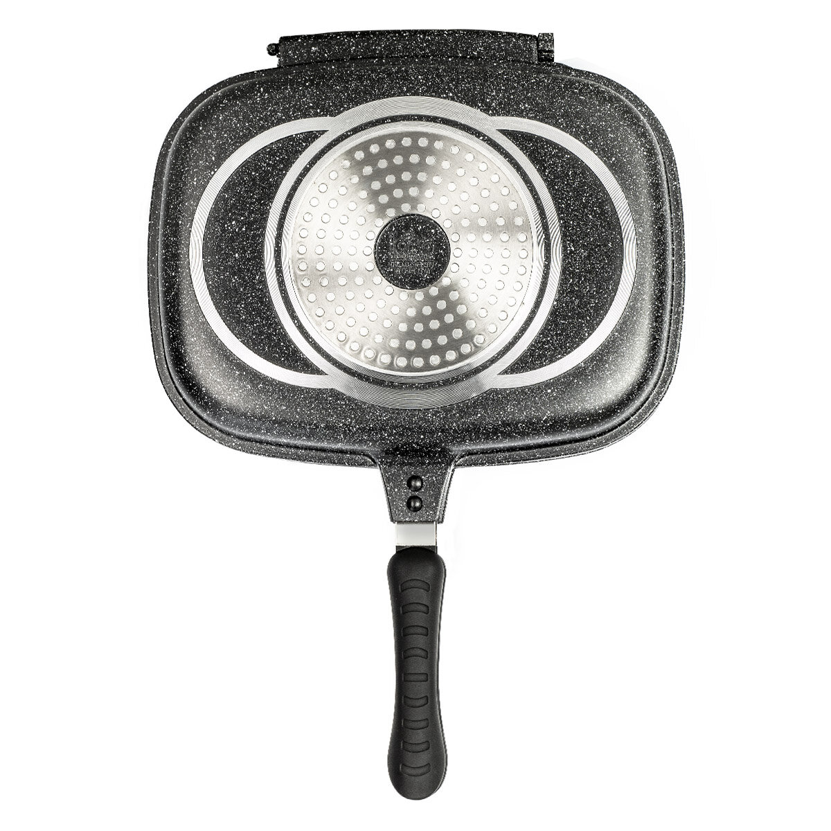 LR02-221 Сковорода-гриль LARA серия Rio 30см, двойная, мрамор, капсулированное индукционное дно