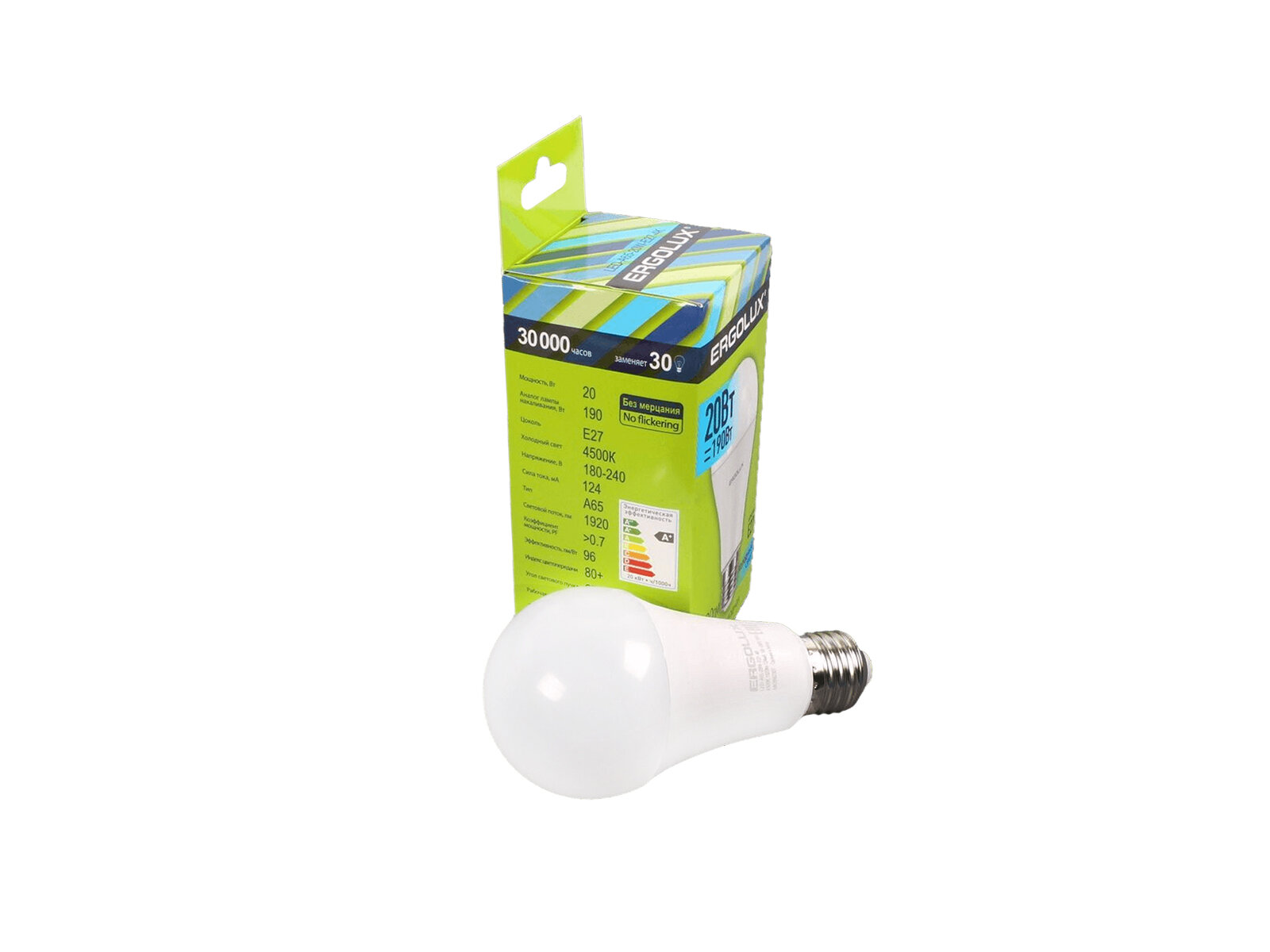 Лампа светодиодная Ergolux 13183, E27, A65, 20 Вт, 4500 К