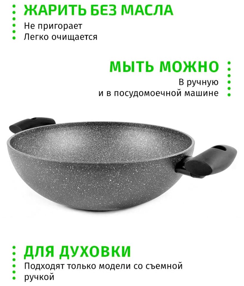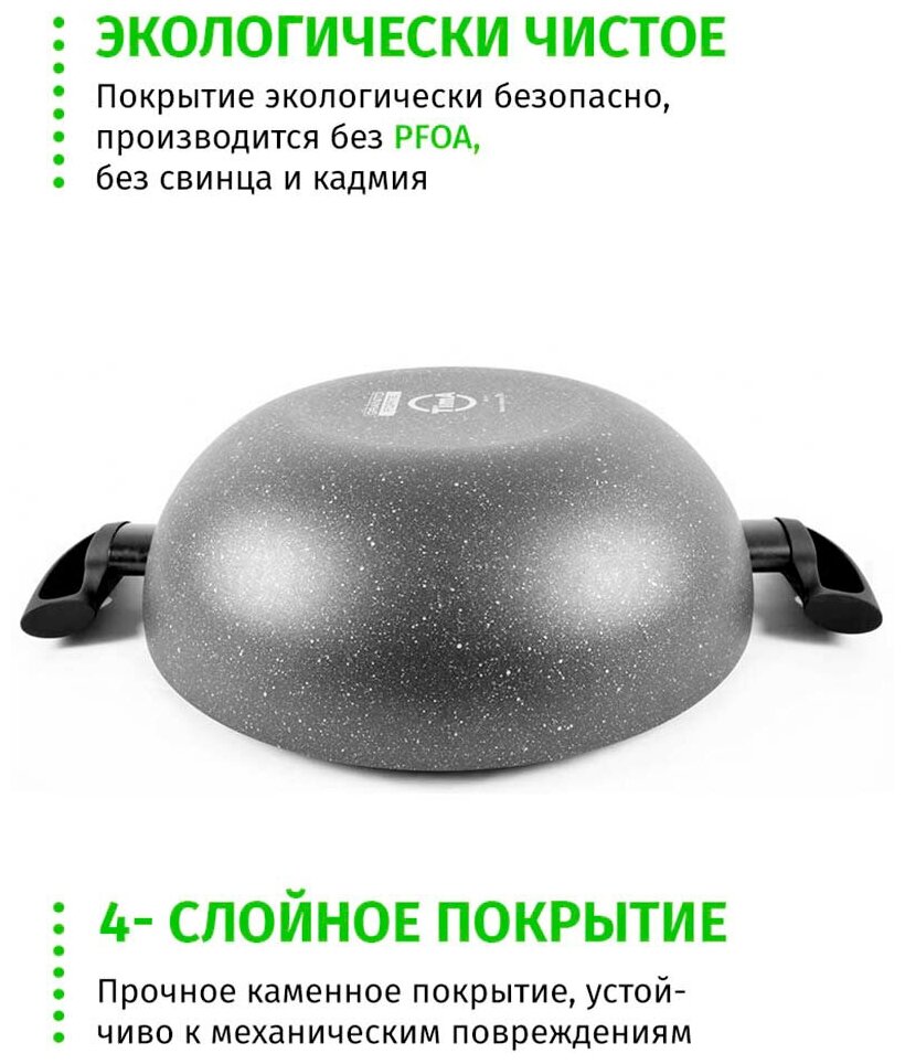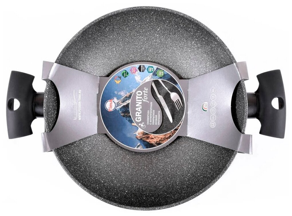 Сковорода вок сотейник 28см TIMA Granito Forte с крышкой, каменное покрытие R3sistek, Италия интересное:
