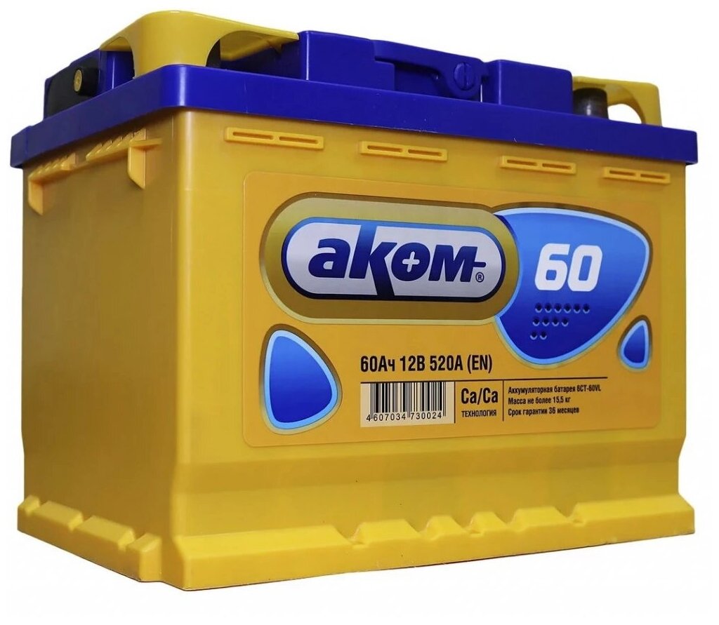 Автомобильный аккумулятор АКОМ 60 Ач прямая полярность