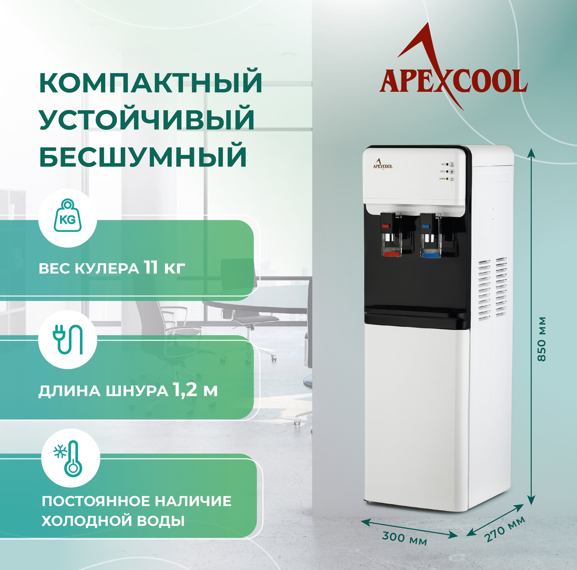 Кулер для воды напольный со шкафчиком APEXCOOL 07 LE белый нагрев и охлаждение интересное: