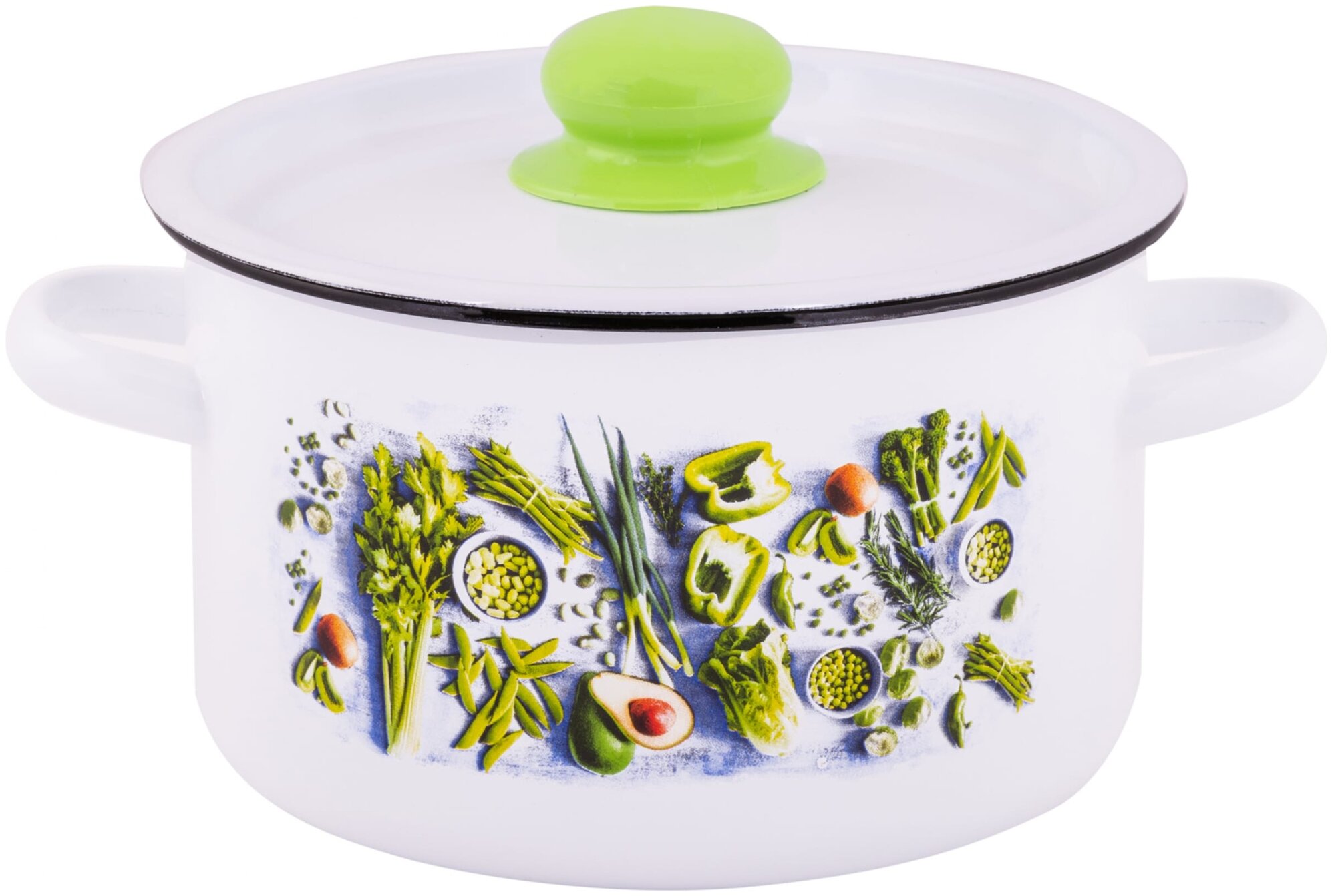 Кастрюля эмалированная Appetite Свежая зелень, с крышкой, 1,5 л