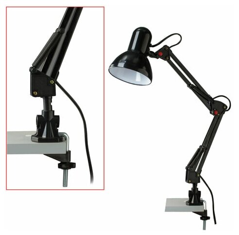 Настольная лампа Sonnen TL-007, на подставке + струбцина, 40 Вт, Е27, черный, высота 60 см, 235540