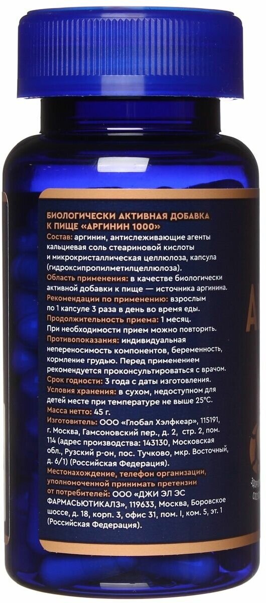Аргинин 1000, 90 капсул по 400 мг GLS Pharmaceuticals 7182653 .