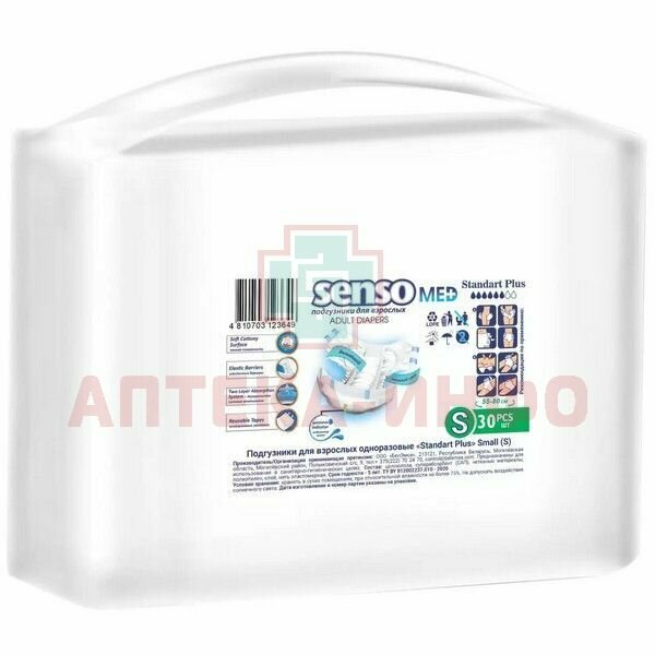 СохранитьПодгузники для взрослых «Senso Med» Standart Plus S (55-80), 30 шт интересное: