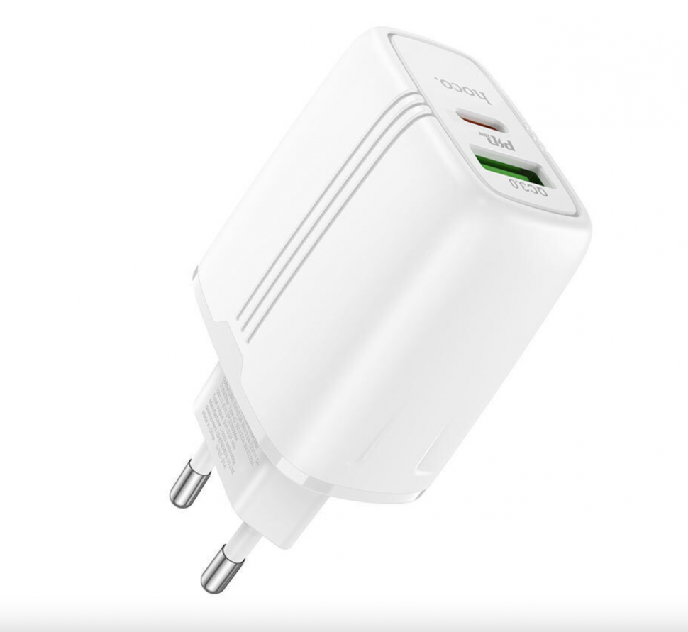 СЗУ, 1 USB 3.0 QC+1 PD 20W (N11), HOCO, Безопасный сертификат, белая