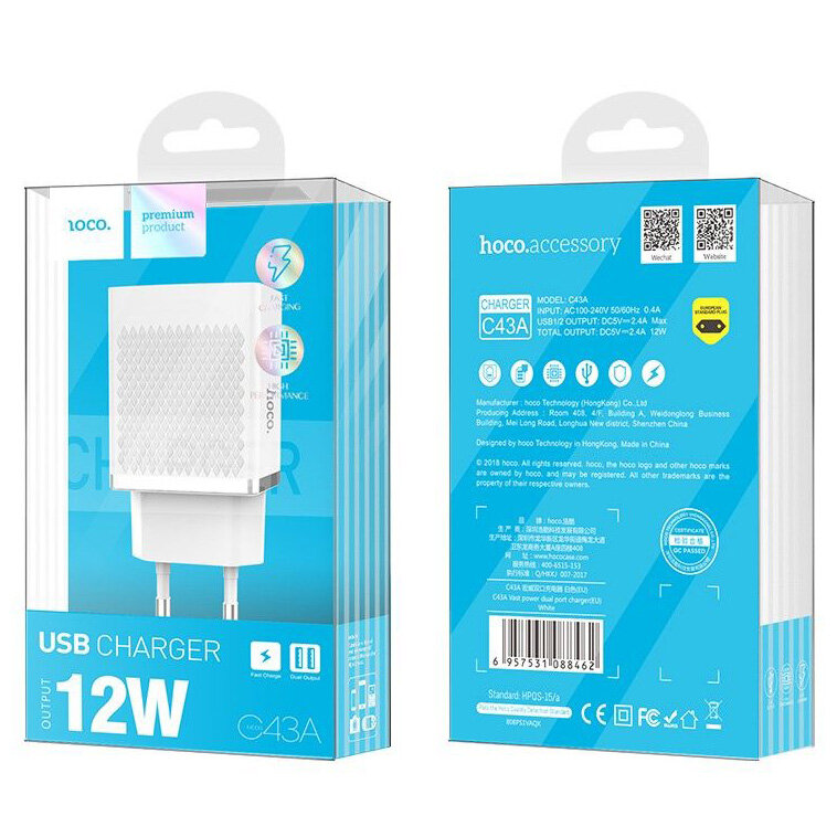 Ниже Вы можете прочитать отзывы на Сетевое зарядное устройство (СЗУ) Hoco C43A (2 USB) 2.4 А, белый, ознакомится с подробными характеристиками, посмотреть интересные обзоры и фотографии на Сетевое зарядное устройство (СЗУ) Hoco C43A (2 USB) 2.4 А, белый.