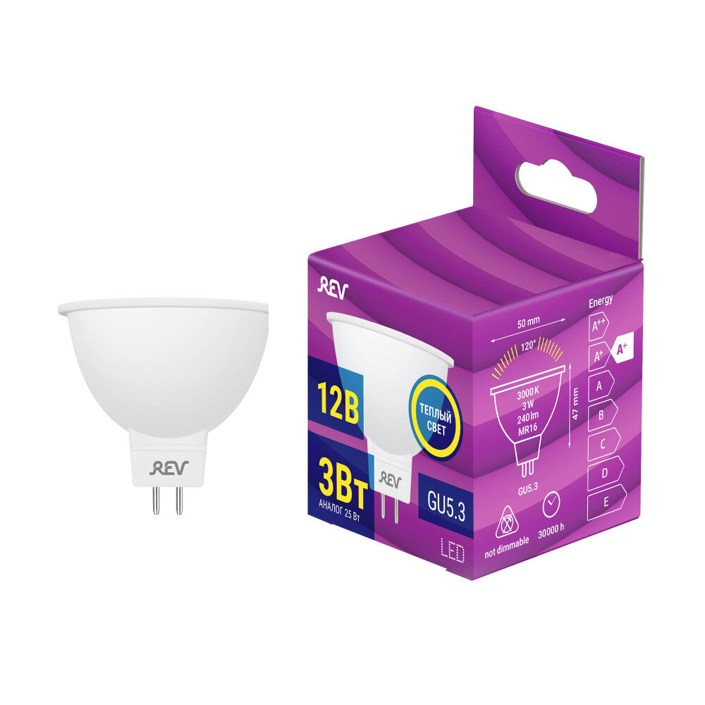 Купить Светодиодная лампа REV, LED MR16 GU5.3 3W, 3000K, теплый свет, 12V 32369 3