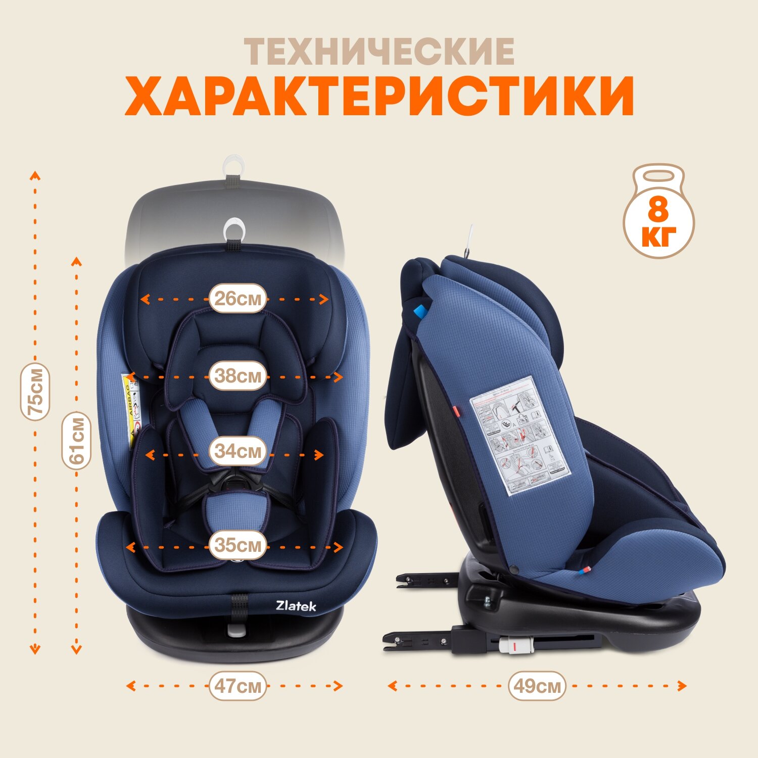 Автокресло детское поворотное с рождения до 12 лет / Isofix / 0+/1/2/3/до 36 кг 0-36кг / 0-12лет, Zlatek Cruiser Isofix, синий