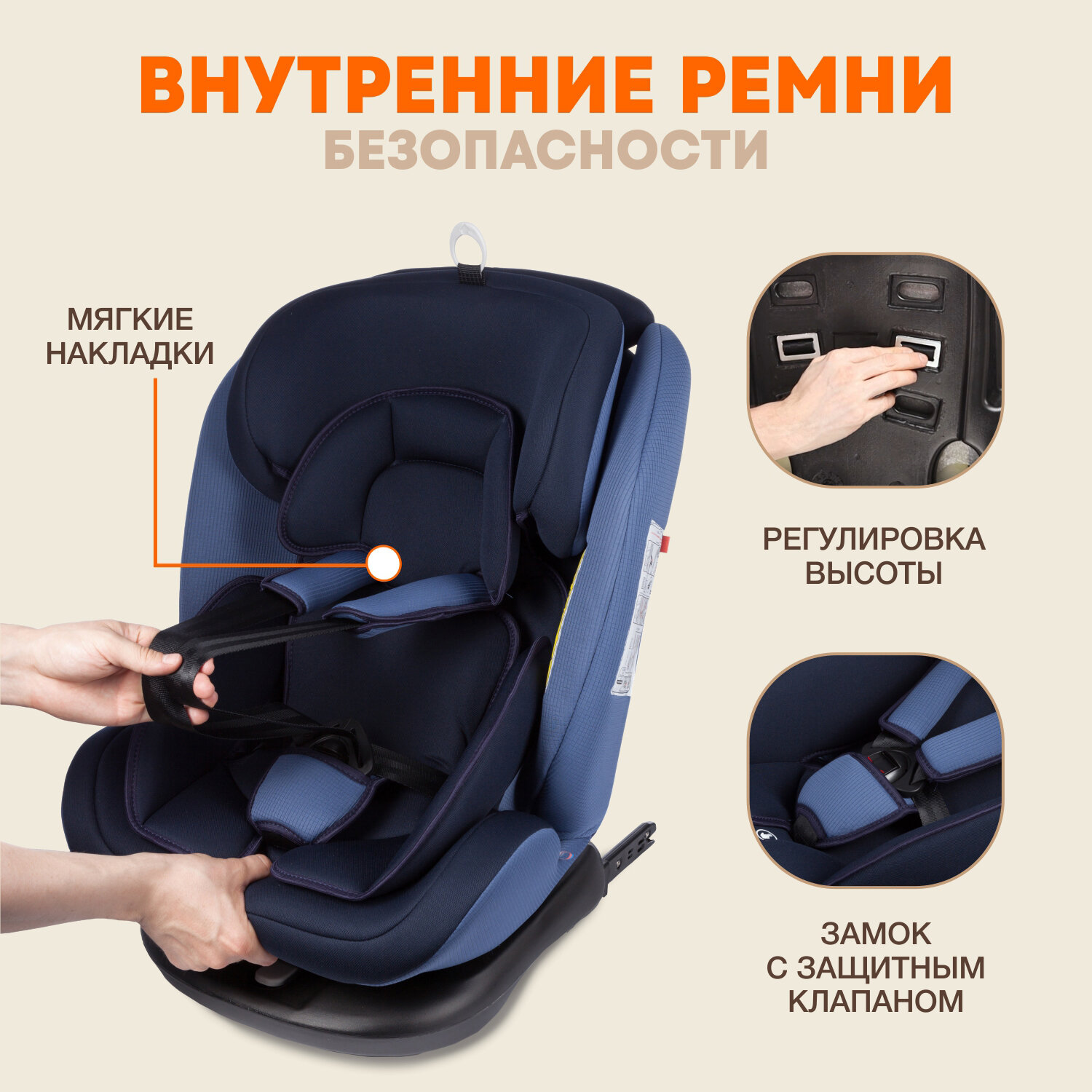 | Регулировка | наклон спинки / внутренние ремни / высота подголовника |