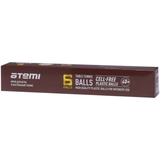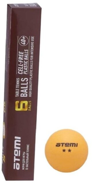 Мячи для настольного тенниса Atemi 2*, пластик, 40+, оранж, 6 шт, ATB201