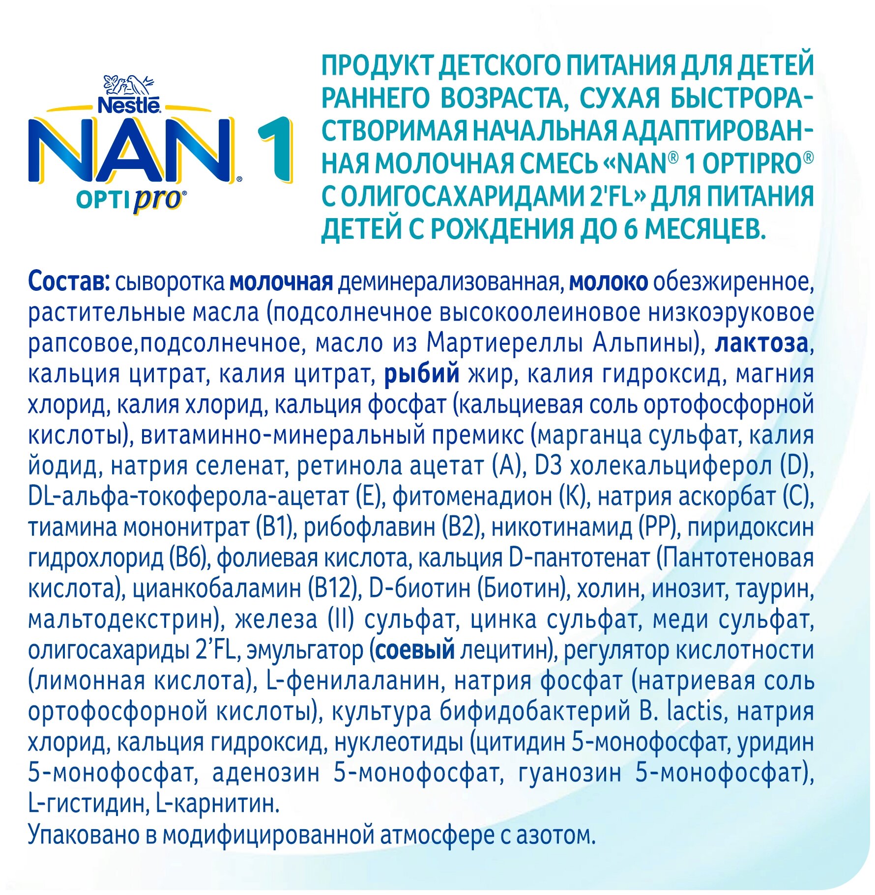 Молочная смесь Nestle NAN 1 OPTIPRO для роста, иммунитета и развития мозга, с рождения, 800 г 2 шт