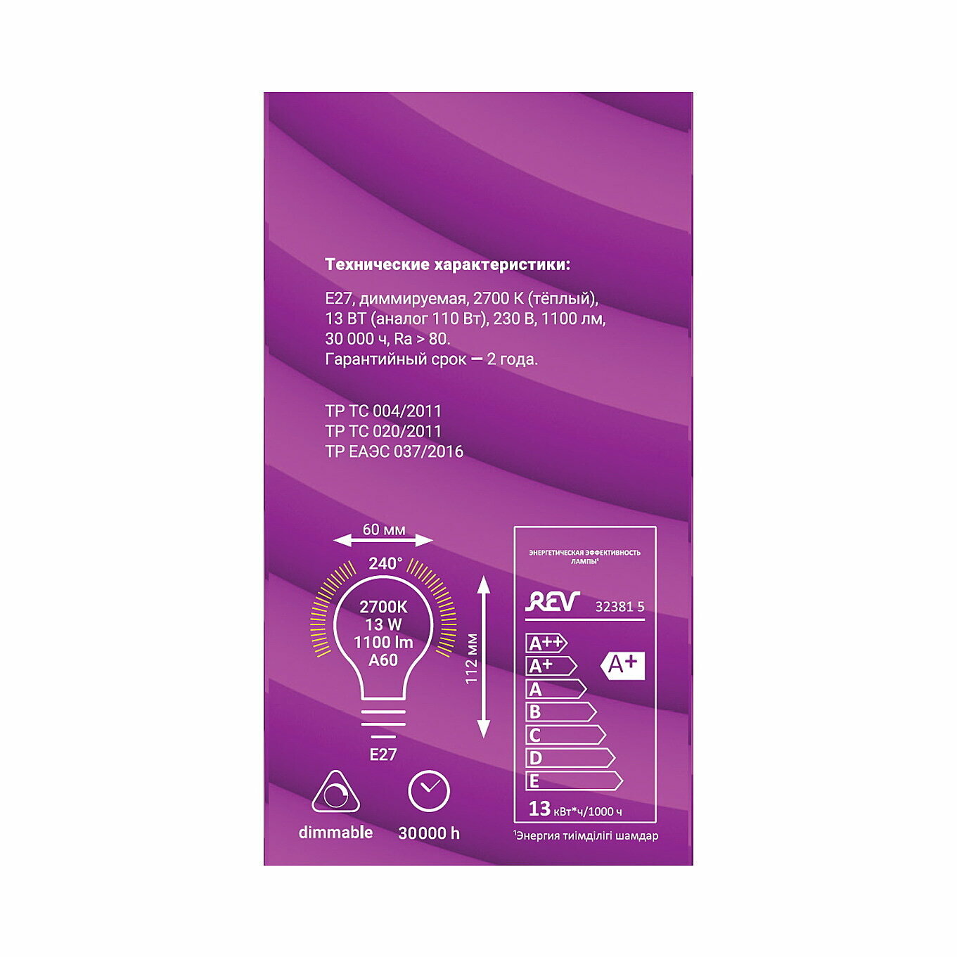 Лампа светодиодная REV диммируемая груша A60 13Вт E27 2700K 1040Лм 32381 5