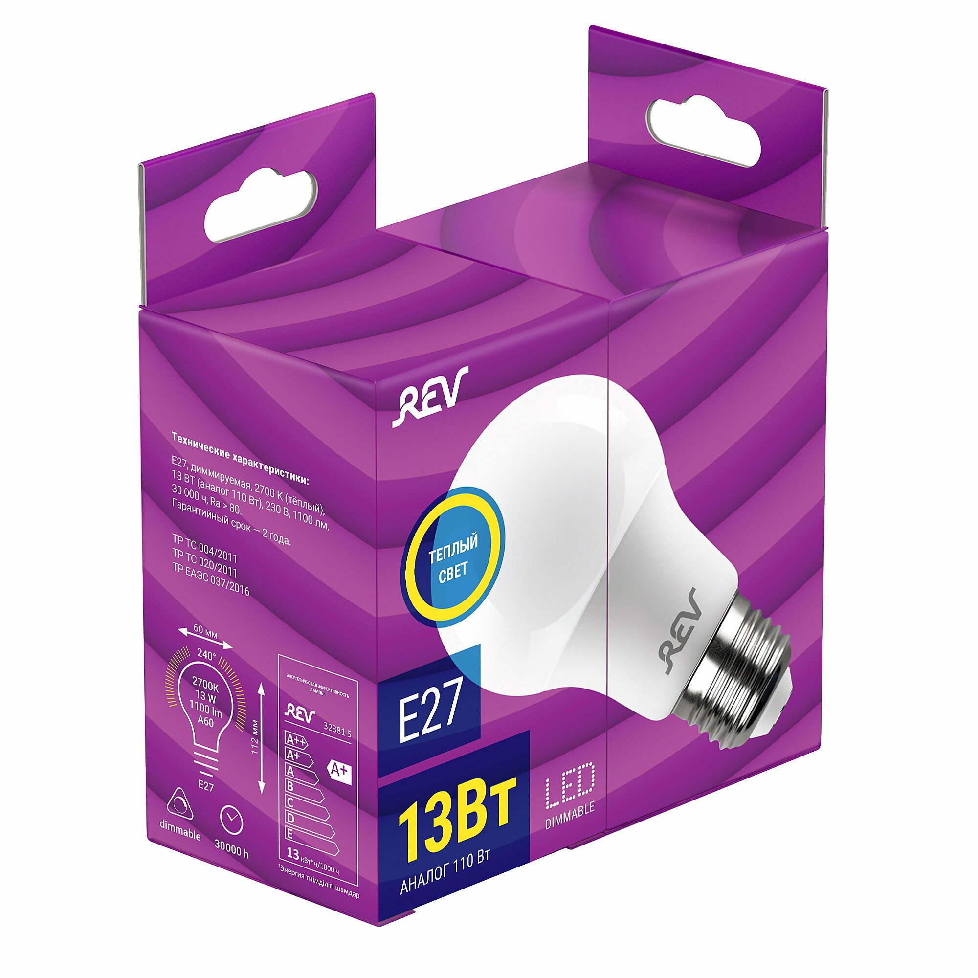 Лампа светодиодная A60 Е27 13W, PREMIUM (DIMMABLE) 2700K теплый свет диммируемая REV 32381 5 интересное: