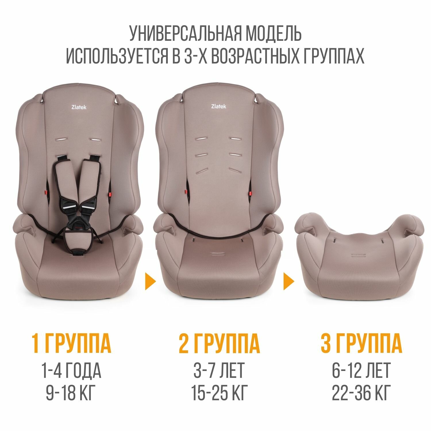 Удерживающее устройство для детей ZLATEK ZL513, basic, мокаччино Atlantic, гр. I/II/III, 9-36 кг, 1-12 лет