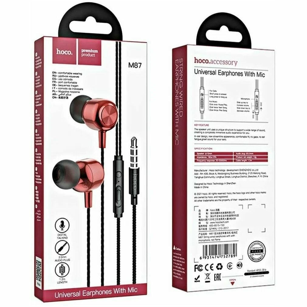 Купить Наушники вакуумные для AUX разъема с микрофоном и регулятором громкости длина 1.2м Hoco M87 Red Flame