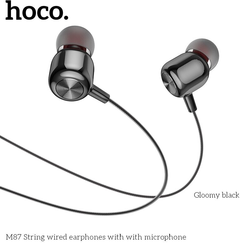 Проводные наушники M87 String wired earphones, hoco, вакуумные с микрофоном, черные