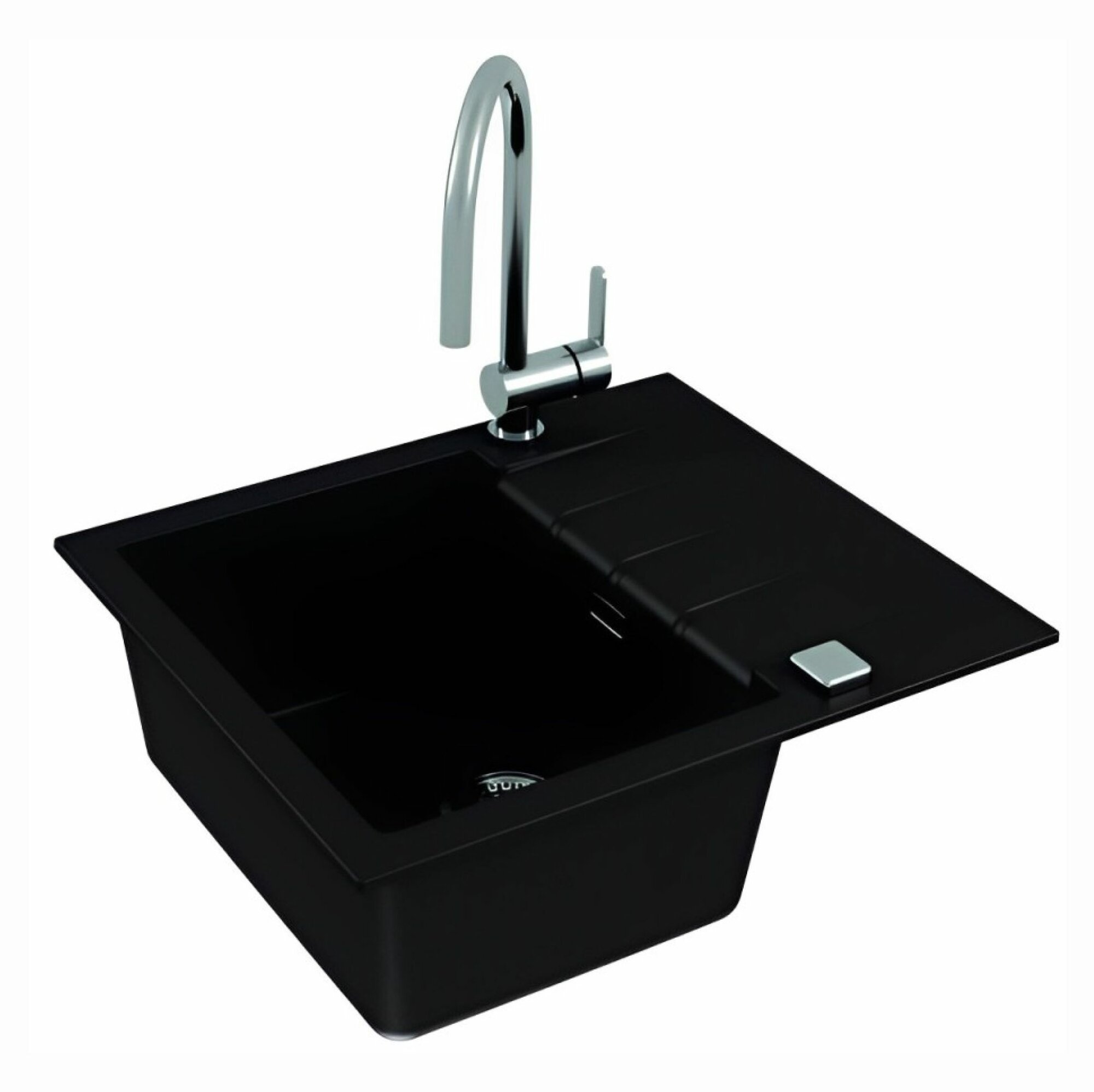 Мойка ALVEUS GRANITAL CADIT 10 CARBON - G91 590 X 500 1X в комплекте с сифоном 1132823, Alveus черный