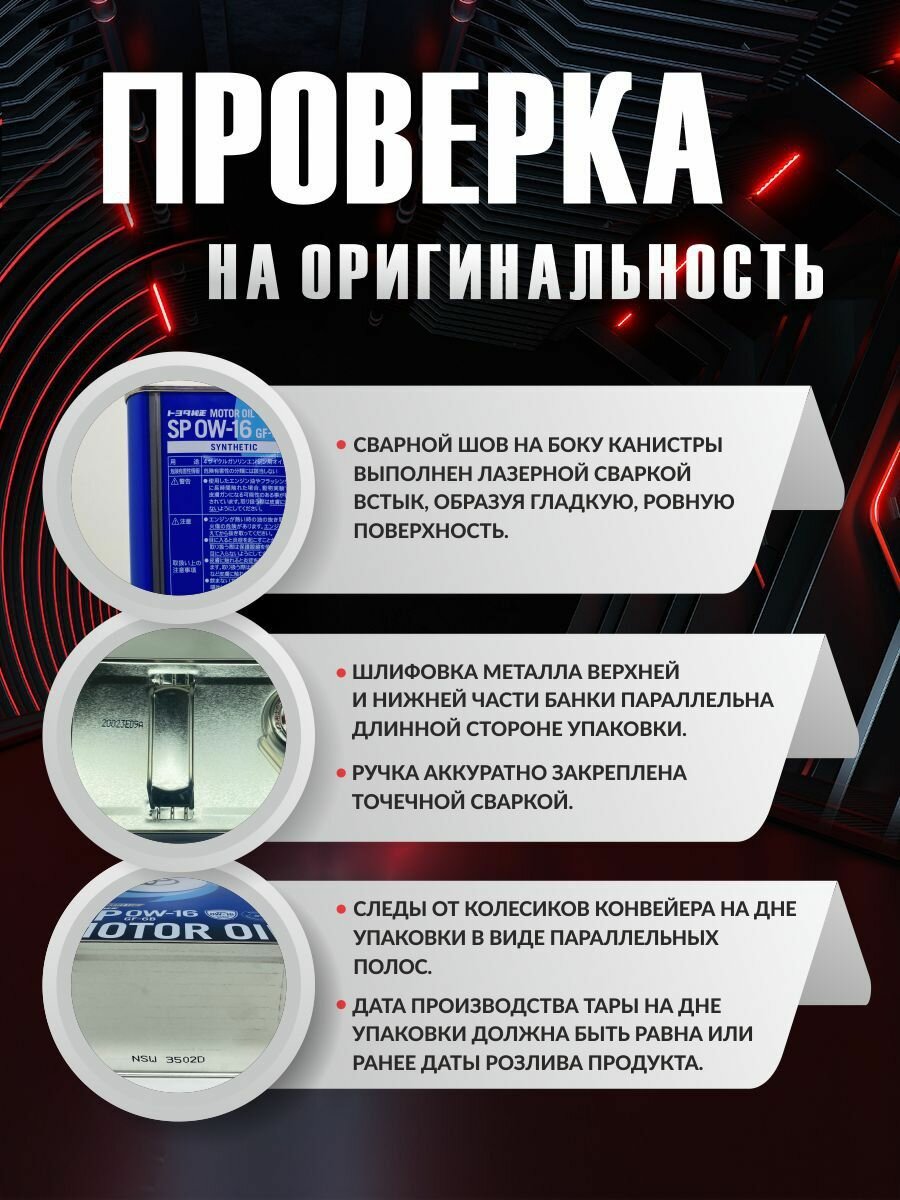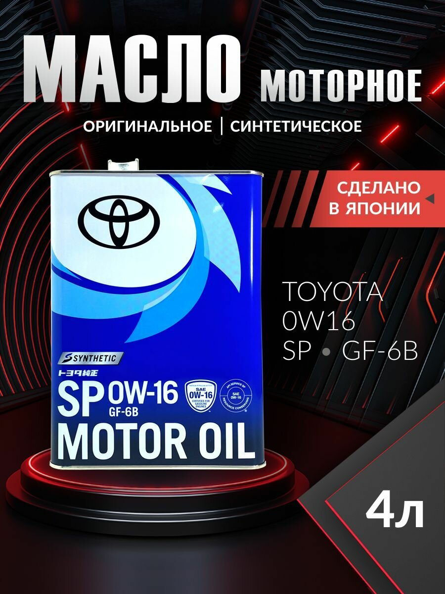 Ниже Вы можете прочитать отзывы на Масло синтетическое TOYOTA SP/GF-6B 0W-16 4L, ознакомится с подробными характеристиками, посмотреть интересные обзоры и фотографии на Масло синтетическое TOYOTA SP/GF-6B 0W-16 4L.