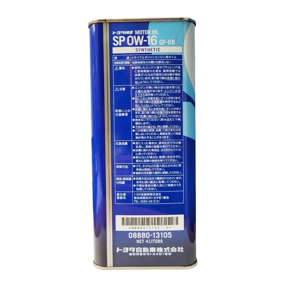 Масло Моторное Toyota Motor Oil Sp 0W16 Gf-6B Синтетическое 4Л. Япония. TOYOTA арт. 0888013105