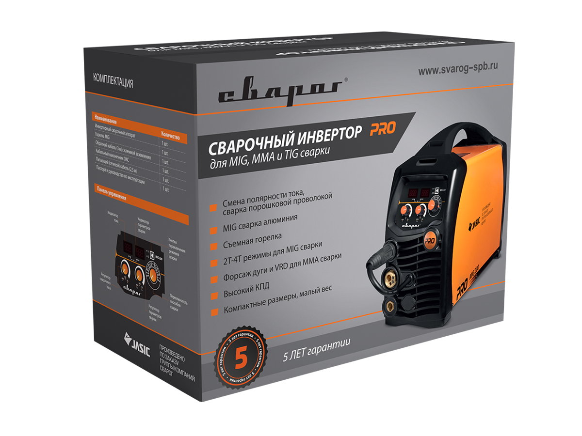 | Комплектация | горелка MS 25; обратный кабель 1×16 мм², 3 метра, с клеммой заземления; кабельный наконечник ОКС 35–50; питающий сетевой кабель 3×2,5 мм², 2,5 метра |