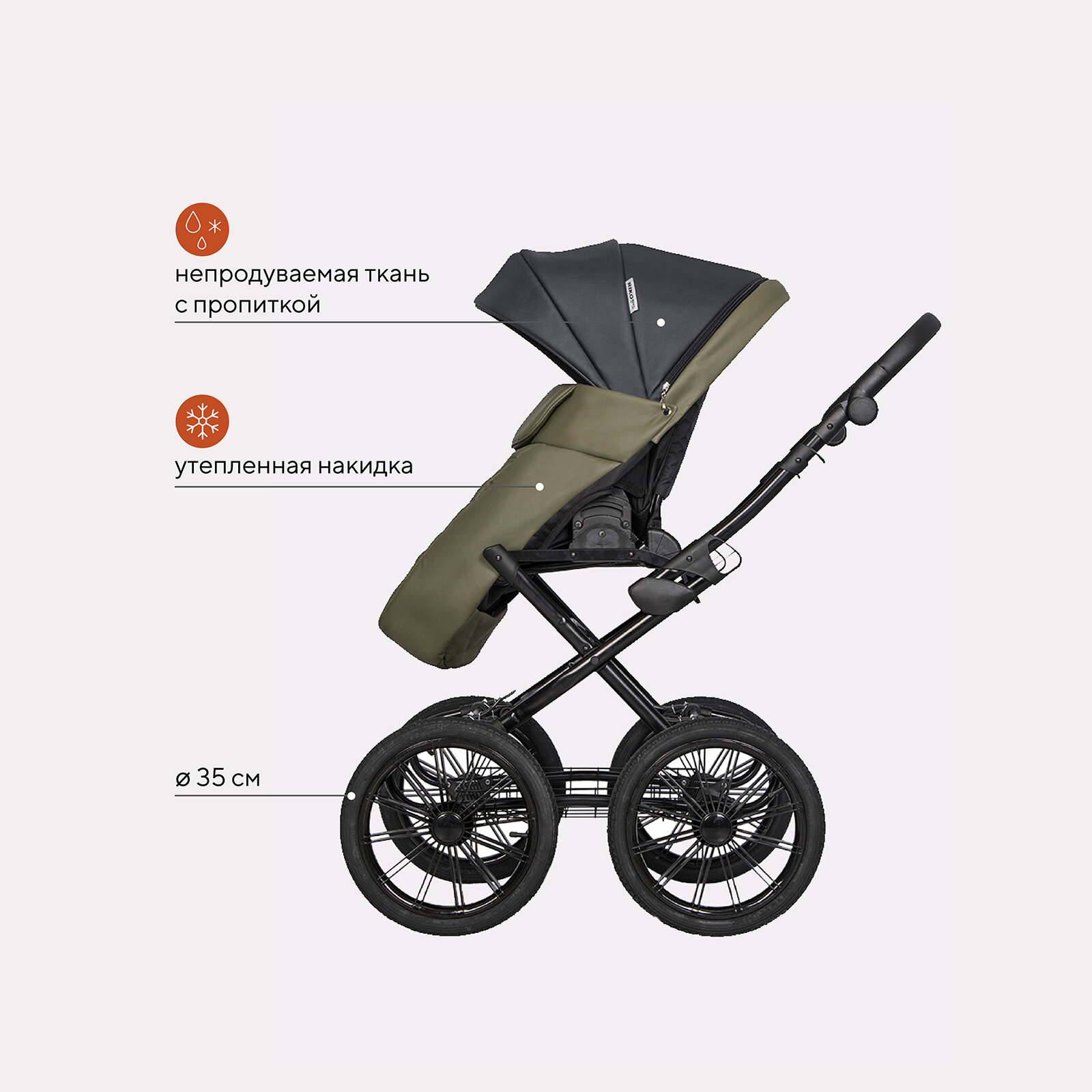 | Аксессуары в комплекте | антимоскитная сетка, дождевик, матрас, накидка на ноги, переноска, рюкзак, солнцезащитный козырек, сумка |