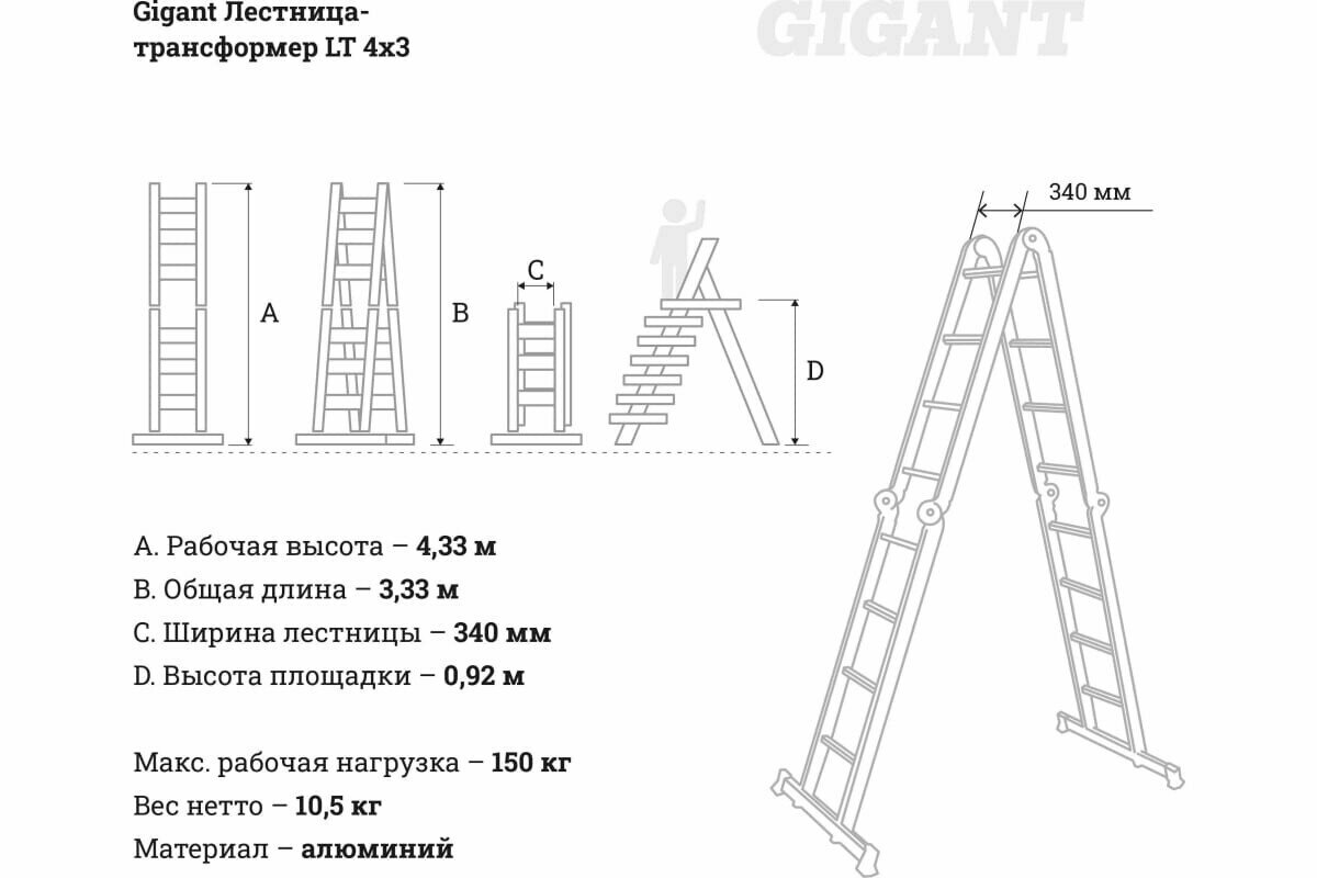 Лестница-трансформер Gigant LT 4х3 (Россия) интересное: