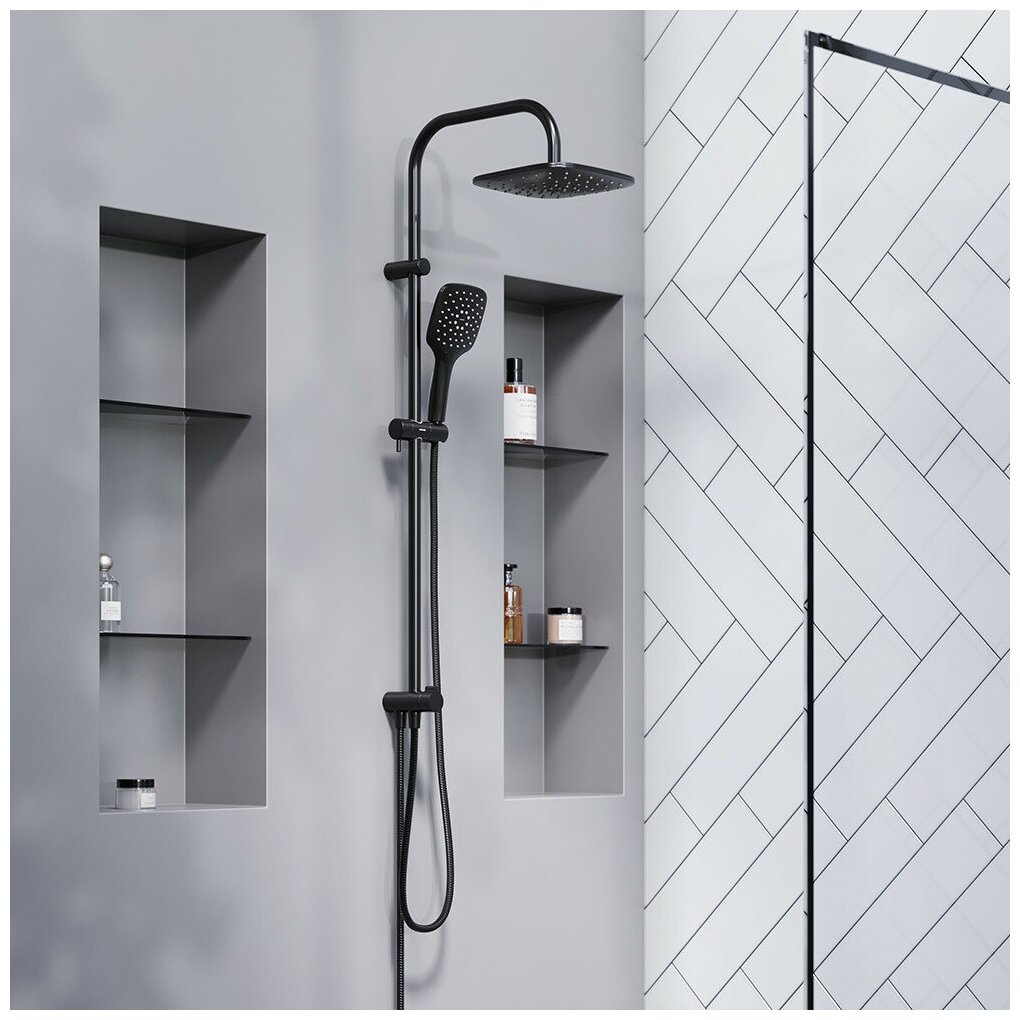 Душ. Система Damixa Origin Evo 978200300: верхний душ 220мм, ручн.душ 120мм, 3 режима, штанга 1010мм, Черн