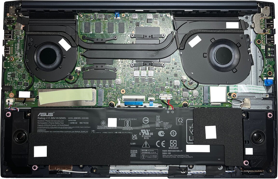 | Минусы: | - Далеко не самая лучшая система охлаждения, в простое вентиляторы даже не работают, при серфинге в браузере обычно тоже отдыхают, но конкретно в нагрузке вообще не справляются. Пришлось в программе Ryzen Controller выставить предел температуры на 80 градусов по процессору (тот же андервольтинг и без отключения турбобуста процессора, что самое главное). В итоге в стресс-тестах процессор 80 градусов (для этого процессора шикарная температура, критическая 105 заявлено), бустится до 4,2-4,4 ГГц, видеокарта 72-73 градуса, вполне приемлемо, выше не поднималась. Чтобы видеокарта работала на 50 Вт (максимум) - нужно выставить в MyASUS режим высокой производительности;