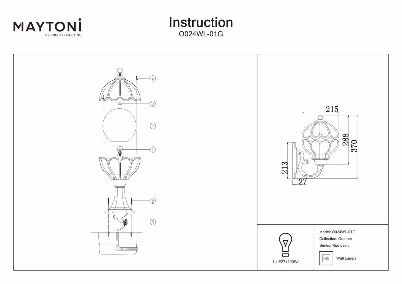 Outdoor Настенный светильник (бра) Maytoni Outdoor O024WL-01G интересное:
