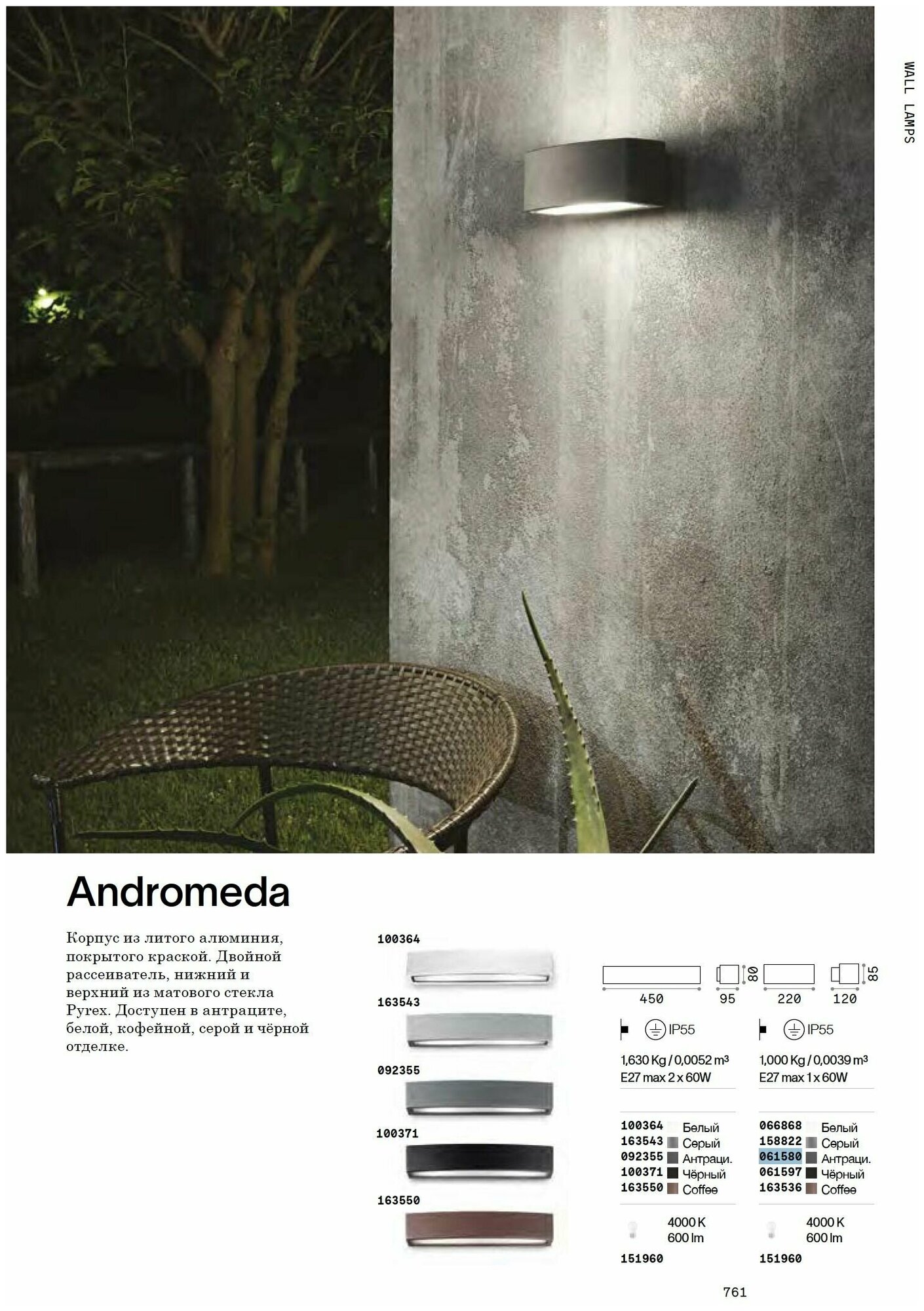 Светильник настенный уличный ideal lux Andromeda AP1 макс.1х60Вт IP55 Е27 230В Белый Алюминий/Стекло Без лампы 066868. интересное: