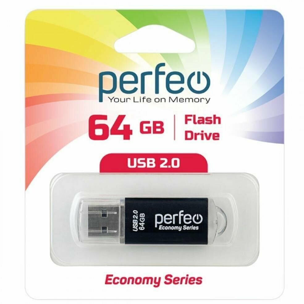 Купить USB Флеш-накопитель USB накопитель Perfeo 64GB E01 Black economy series